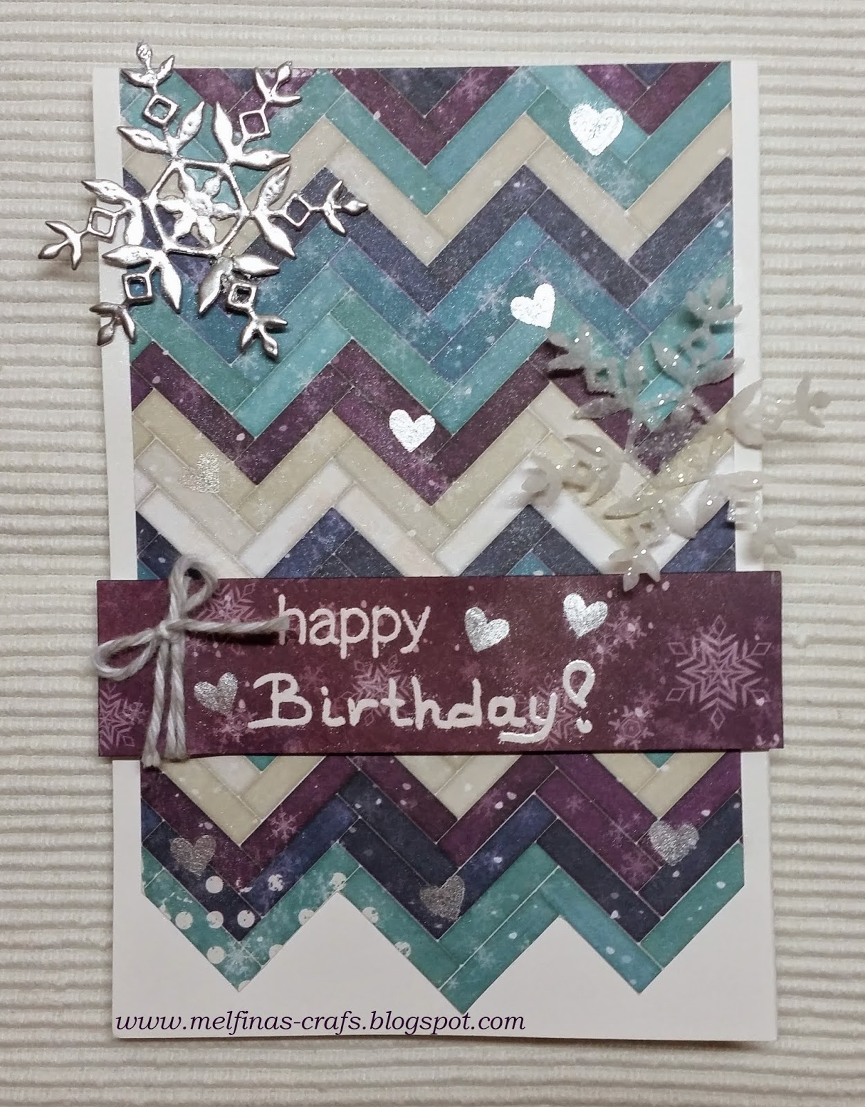 Well, this is my first blogpost of the year and I have a Winter Birthday card for you! The background paper is from the Bo Bunny Altitude Collection and I love it, as it has all my favorite winter colours!